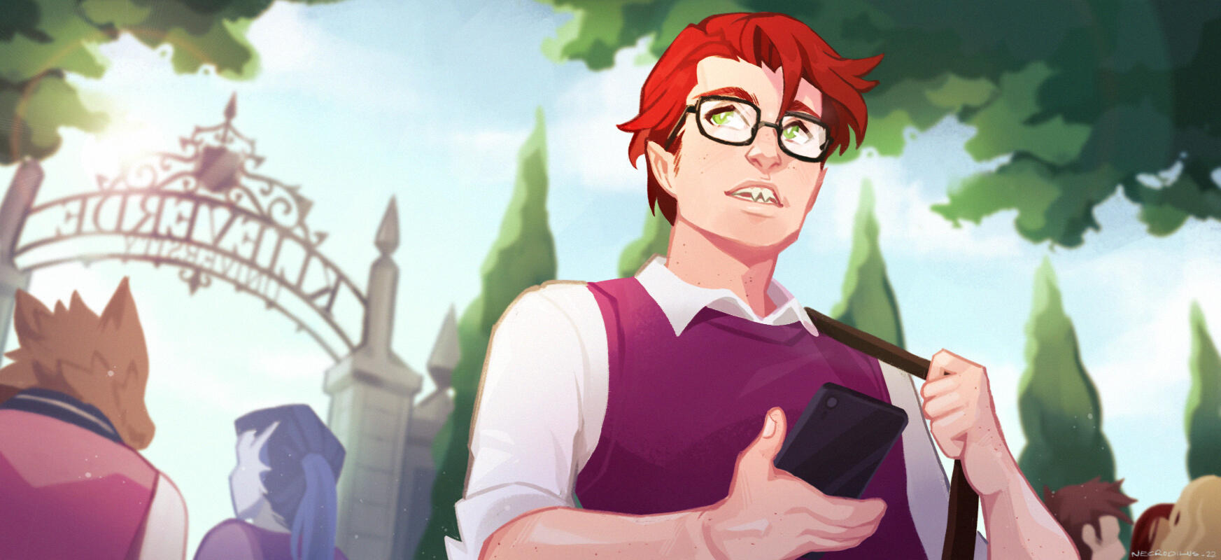 The sun shines bright and the skies are blue, just the perfect weather to start the new semester. Stepping foot into the campus, Elliot feels… Familiar. It was exactly a year ago that he first set foot on the campus, and in a span of a year, he managed to experience things that no freshman should. Haunted halls, coming up with the knowledge that ancient beings reside in proximity, and not to mention; him slaining one just a few months ago.ㅤㅤ“Arriving here after all that… I’m not sure I could be normal about it, but here we are. New year, new semester.” He mumbled to himself, “I should probably try to think nothing has happened. Try not to scare the freshmen, Elly! You’re a senior now!”Elliot went through the halls, with a subtle worry on his mind that the creature would make a comeback; or worse, another one. Living with the knowledge after experiencing one of these things never seems to be easy for one. Plus, it was made certain after he shared the documents of these Elder Beings to the students in the groupchats. Some repsonded with terror, some... confusion.But at least to him, little did Elliot know, some of you have gone through the similar experience as he.